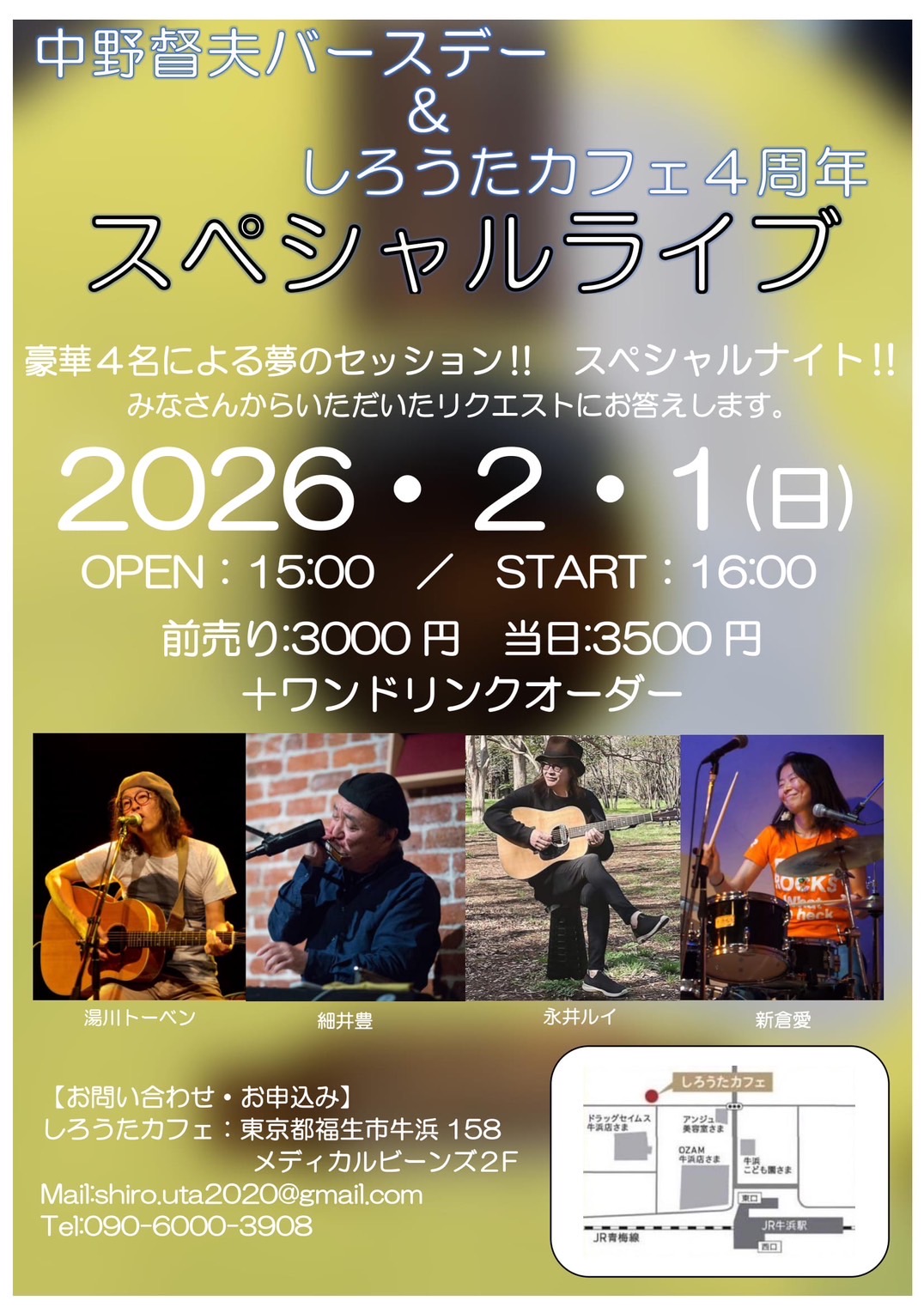中野督夫バースデー&しろうたカフェ4周年 スペシャルライブ