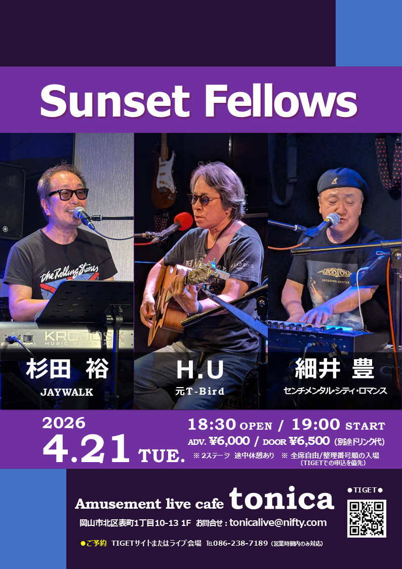 Sunset Fellows(細井 豊(センチメンタル・シティ・ロマンス)、H.U(T-BIRD)、杉田 裕(JAYWALK)
